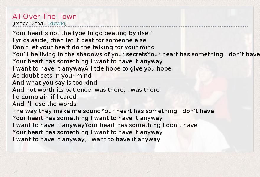 А как ты думаешь, о чем песня "All Over The Town" ?