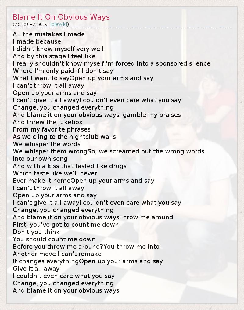 А как ты думаешь, о чем песня "Blame It On Obvious Ways" ?