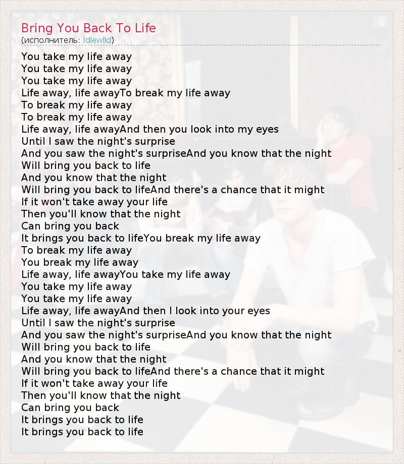 ГлавнаяИсполнителиIdlewildBring You Back To Life