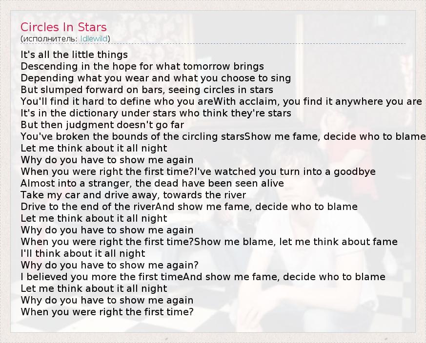 А как ты думаешь, о чем песня "Circles In Stars" ?