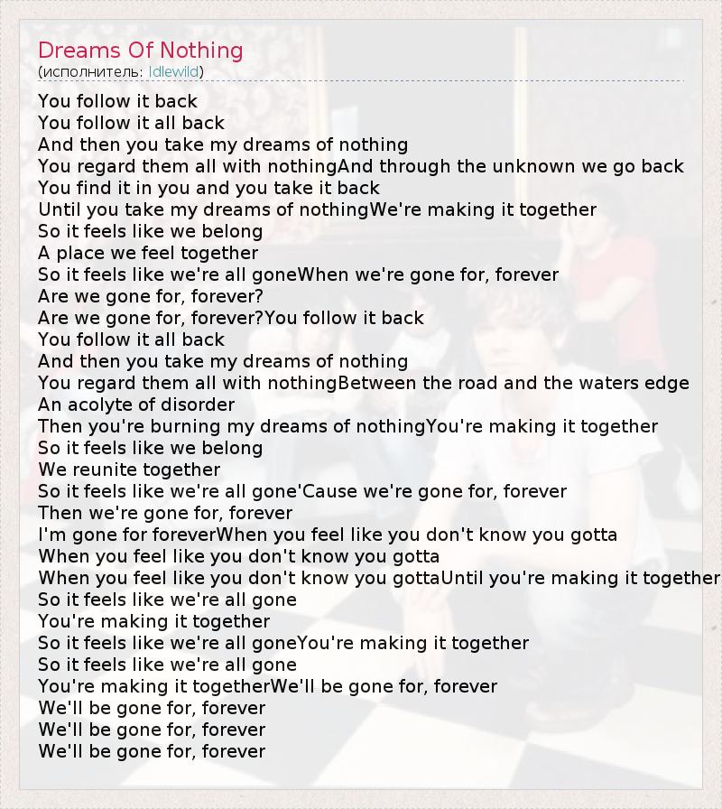 А как ты думаешь, о чем песня "Dreams Of Nothing" ?