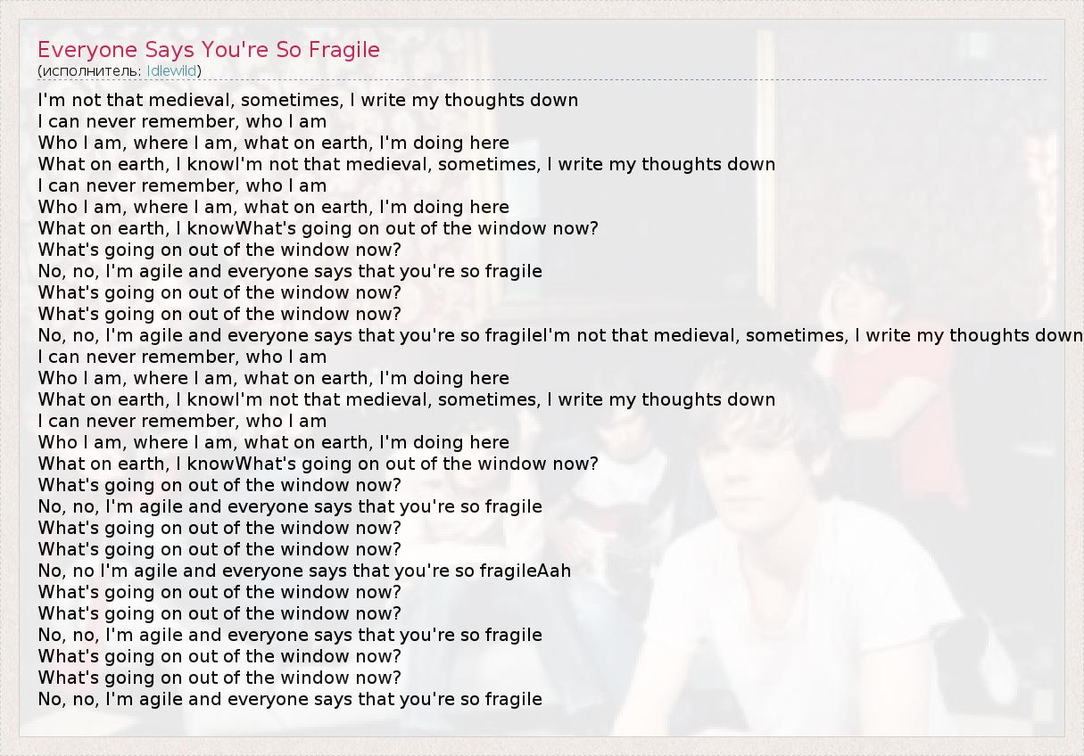 А как ты думаешь, о чем песня "Everyone Says You're So Fragile" ?