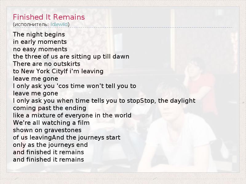 А как ты думаешь, о чем песня "Finished It Remains" ?