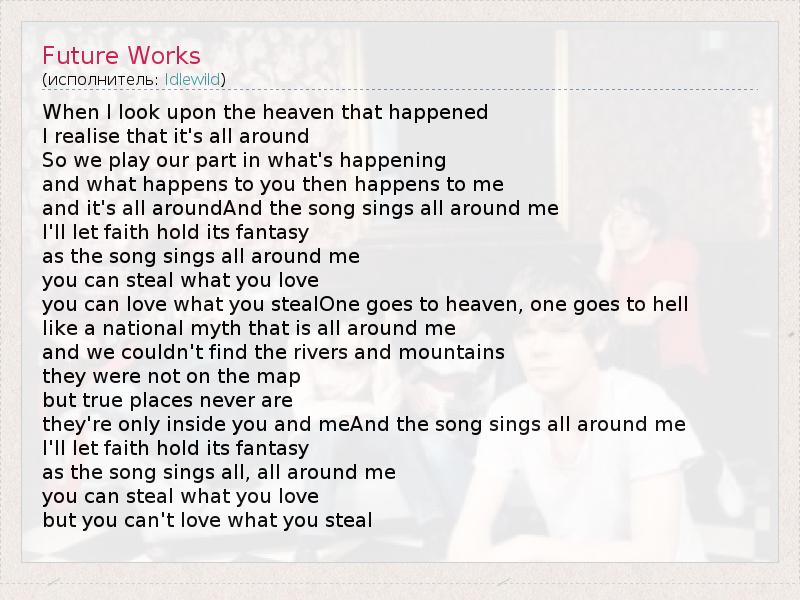Это интересно:Группа Idlewild сформировалась в 1995 году, в Эдинбурге, Шотландия. Родди Вумбл – девятнадцатилетний студент, учившийся на фотографа, только что переехавший в Эдинбург из севера Шотландии, встречает Колина Ньютона, вовремя одной из студенческих вечеринок в Толл Кросс. Род Джонс который тоже был на этой вечеринке не познакомился с ними в тот вечер. Колин, как и Родди тоже перебрался в Эдинбург... продолжение
