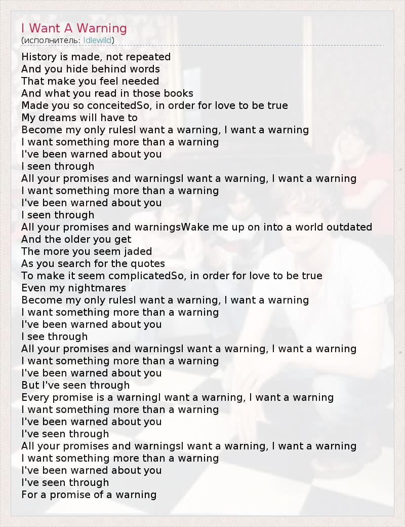А как ты думаешь, о чем песня "I Want A Warning" ?