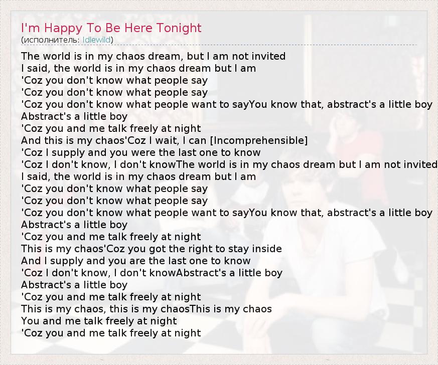 А как ты думаешь, о чем песня "I'm Happy To Be Here Tonight" ?