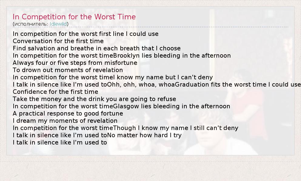 ГлавнаяИсполнителиIdlewildIn Competition for the Worst Time