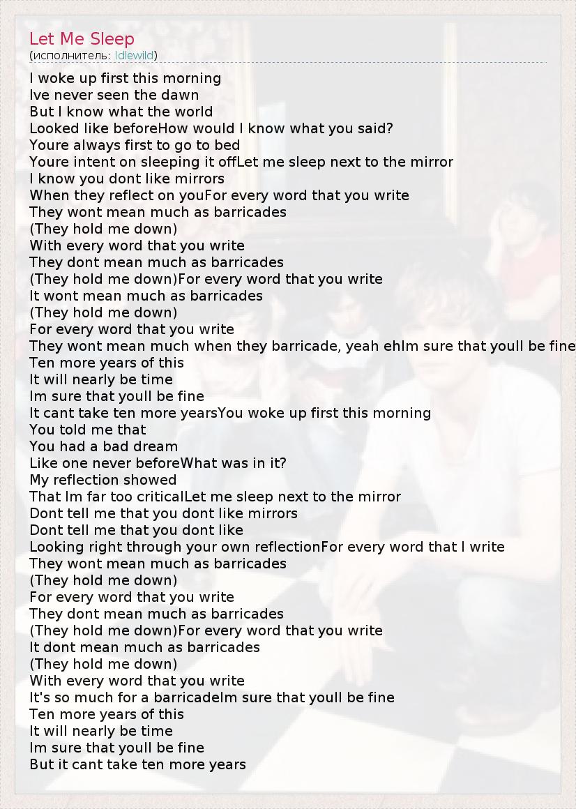 А как ты думаешь, о чем песня "Let Me Sleep" ?