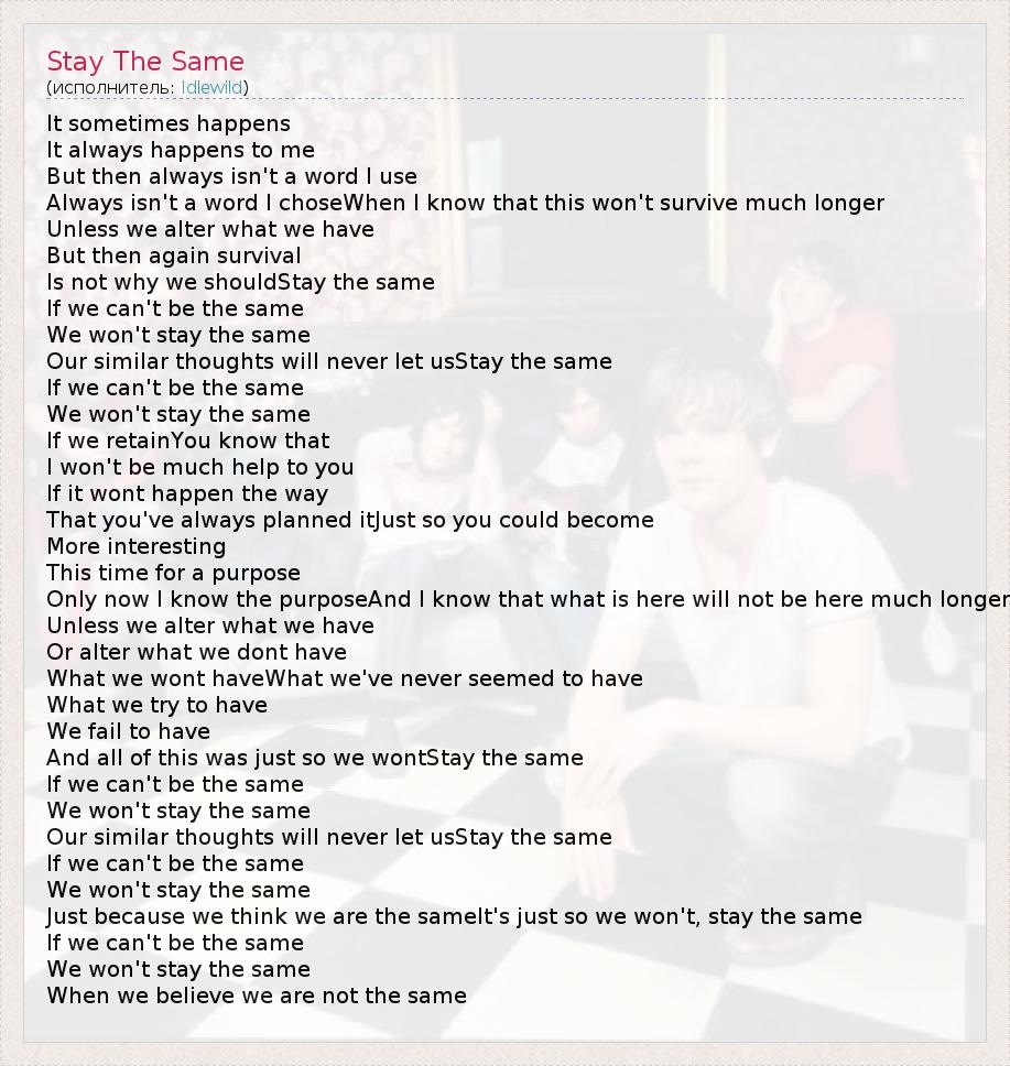 А как ты думаешь, о чем песня "Stay The Same" ?