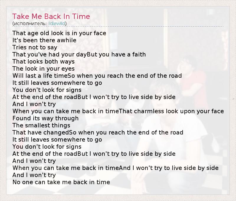 А как ты думаешь, о чем песня "Take Me Back In Time" ?
