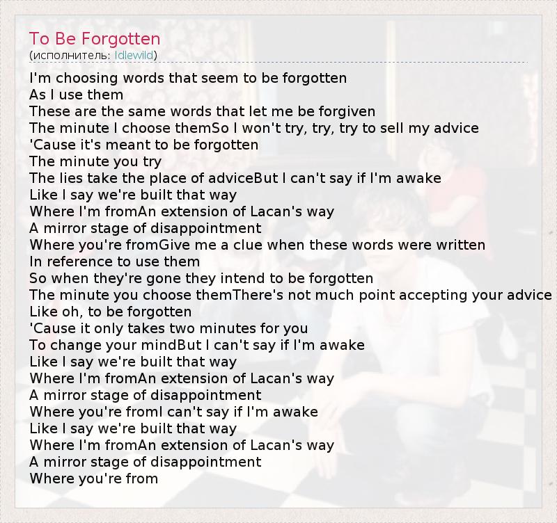 А как ты думаешь, о чем песня "To Be Forgotten" ?