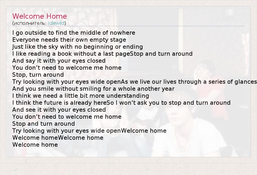 А как ты думаешь, о чем песня "Welcome Home" ?