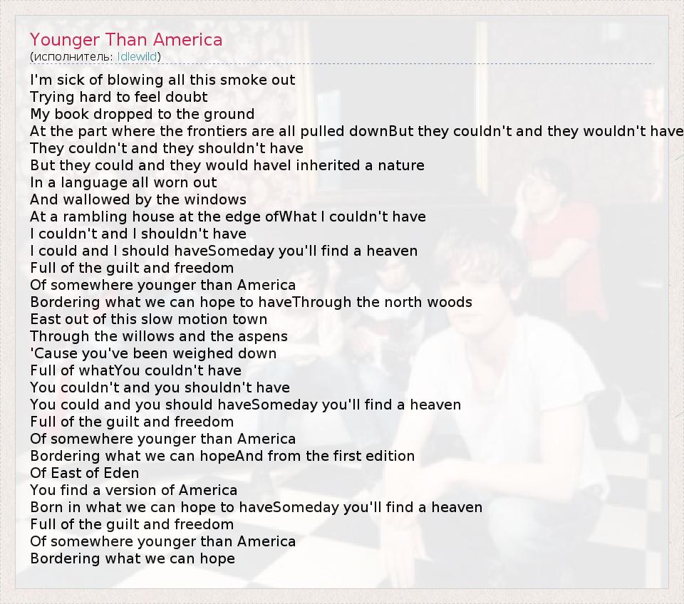 А как ты думаешь, о чем песня "Younger Than America" ?