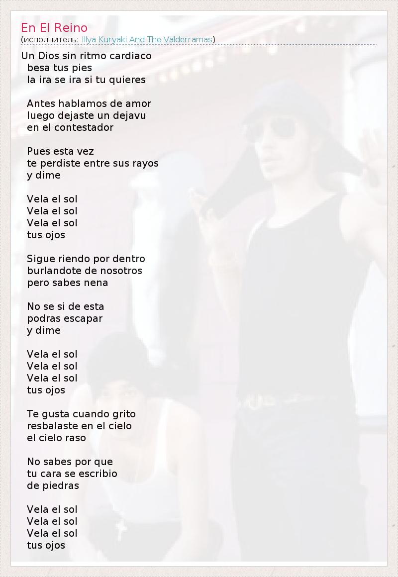 Un Dios sin ritmo cardiaco besa tus pies la ira se ira si tu quieres Antes hablamos de amor luego dejaste un dejavu en el contestador Pues esta vez te perdiste entre sus rayos y dime Vela el sol Vela el sol Vela el sol tus ojos Sigue riendo por dentro burlandote de nosotros pero sabes nena No se si de esta podras escapar y dime Vela el sol Vela el sol Vela el sol tus ojos Te gusta cuando grito resbalaste en el cielo el cielo raso No sabes por que tu cara se escribio de piedras Vela el sol Vela el sol Vela el sol tus ojos