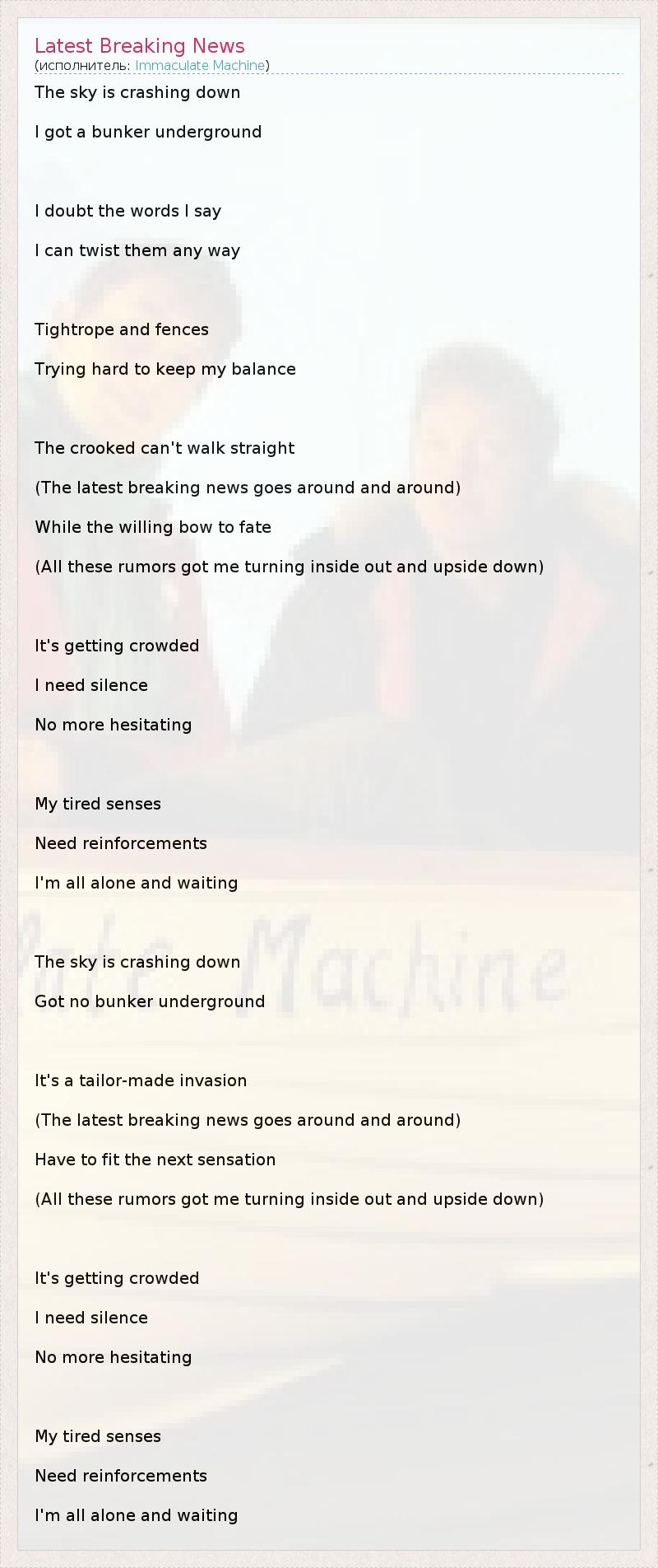 А как ты думаешь, о чем песня "Latest Breaking News" ?