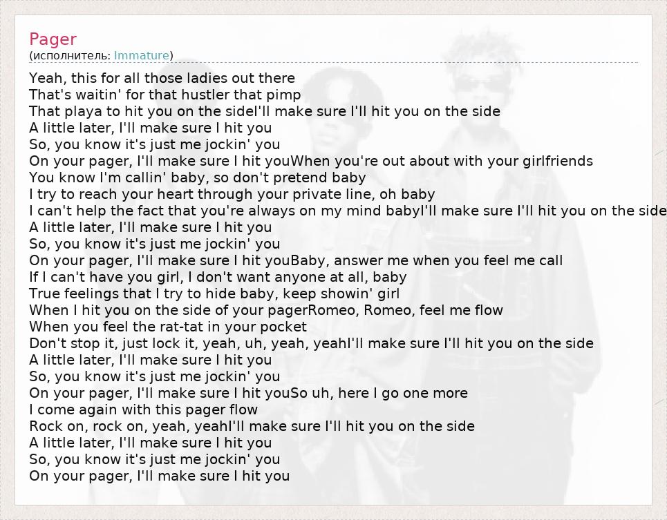 On your pager, I'll make sure I hit youBaby, answer me when you feel me call
