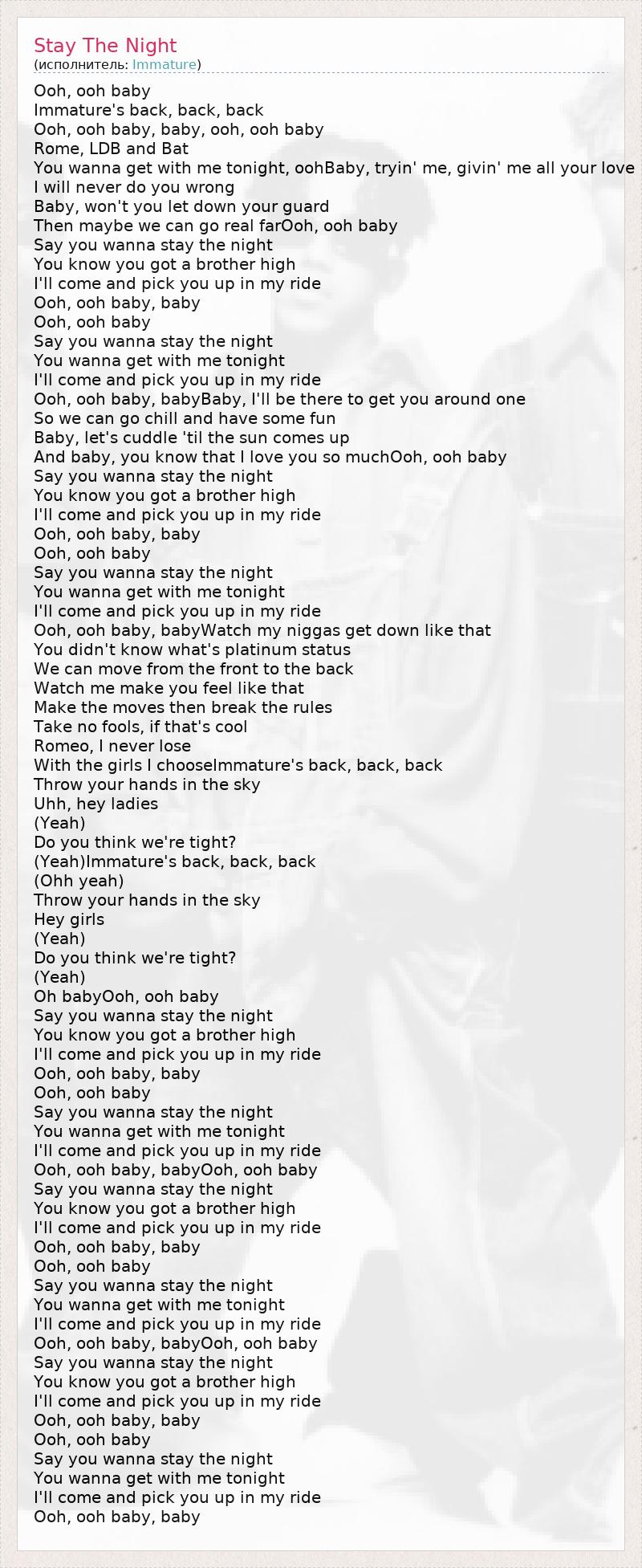 А как ты думаешь, о чем песня "Stay The Night" ?
