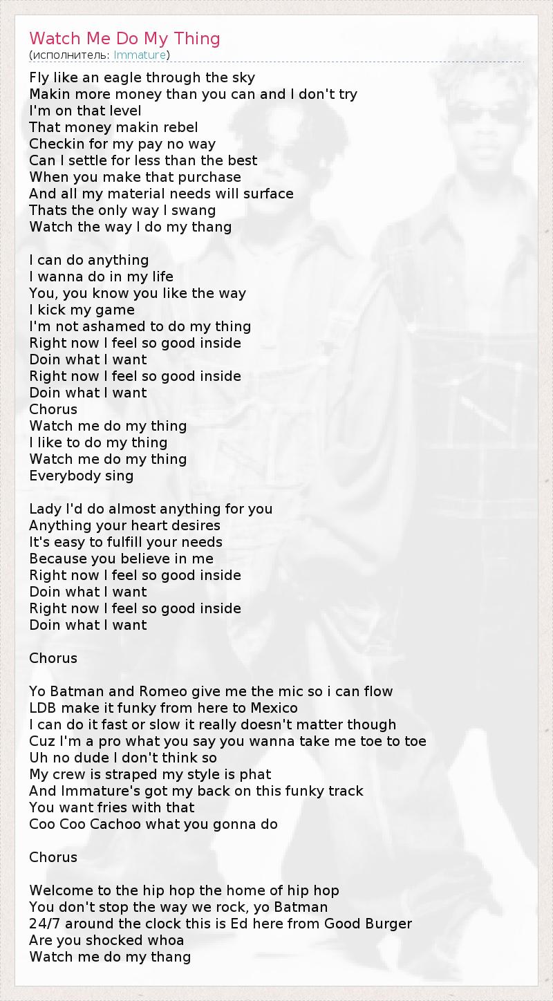 А как ты думаешь, о чем песня "Watch Me Do My Thing" ?