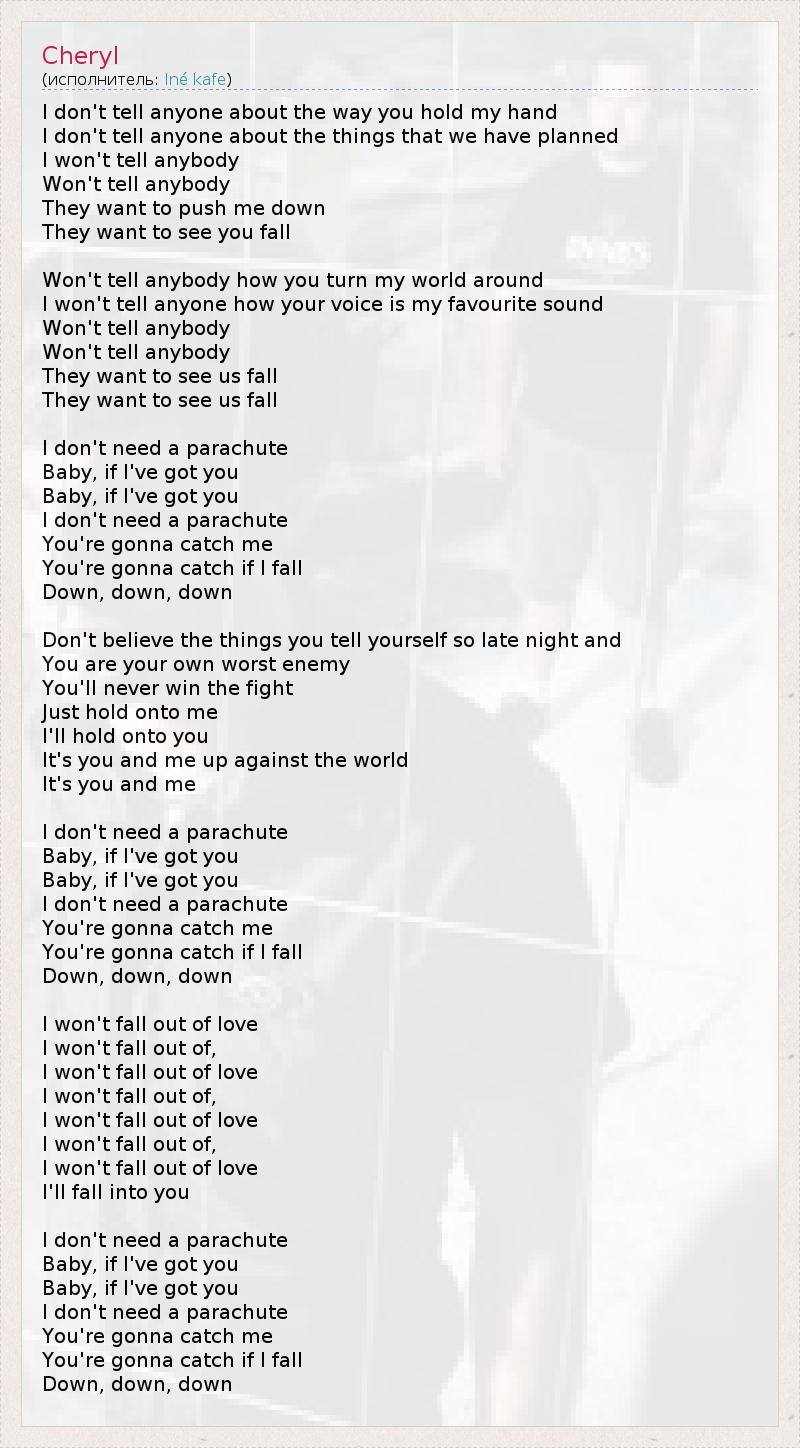 Я никому не рассказываю о том, как ты держишь меня за руку,