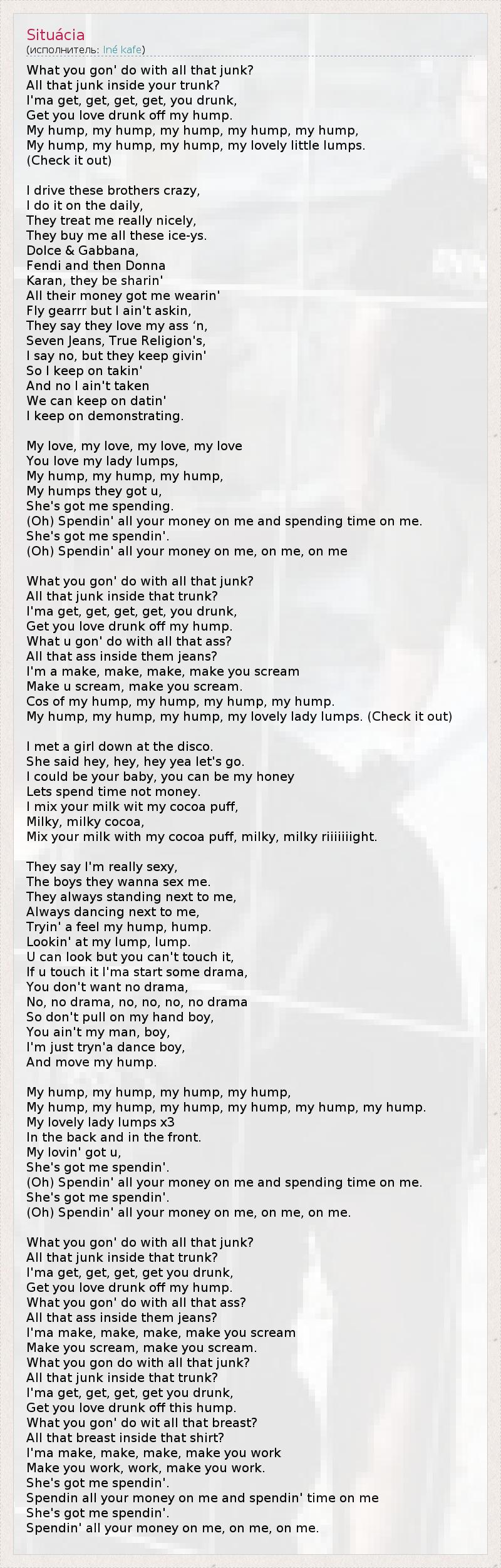 My hump, my hump, my hump, my lovely lady lumps. (Check it out)