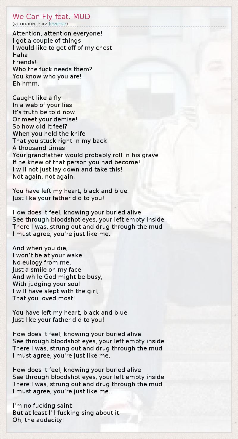 А как ты думаешь, о чем песня "We Can Fly feat. MUD" ?