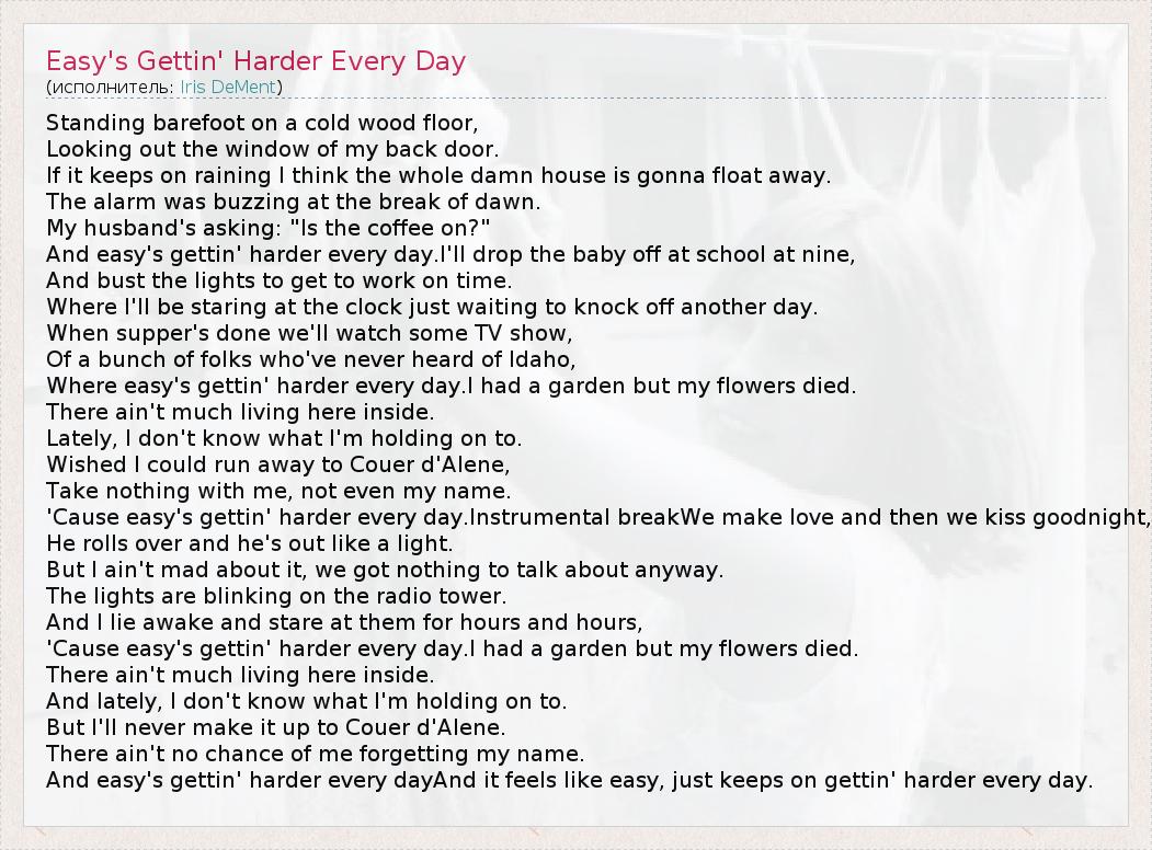 А как ты думаешь, о чем песня "Easy's Gettin' Harder Every Day" ?