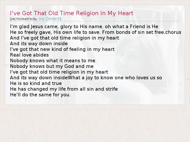 А как ты думаешь, о чем песня "I've Got That Old Time Religion In My Heart" ?