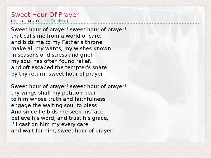 А как ты думаешь, о чем песня "Sweet Hour Of Prayer" ?