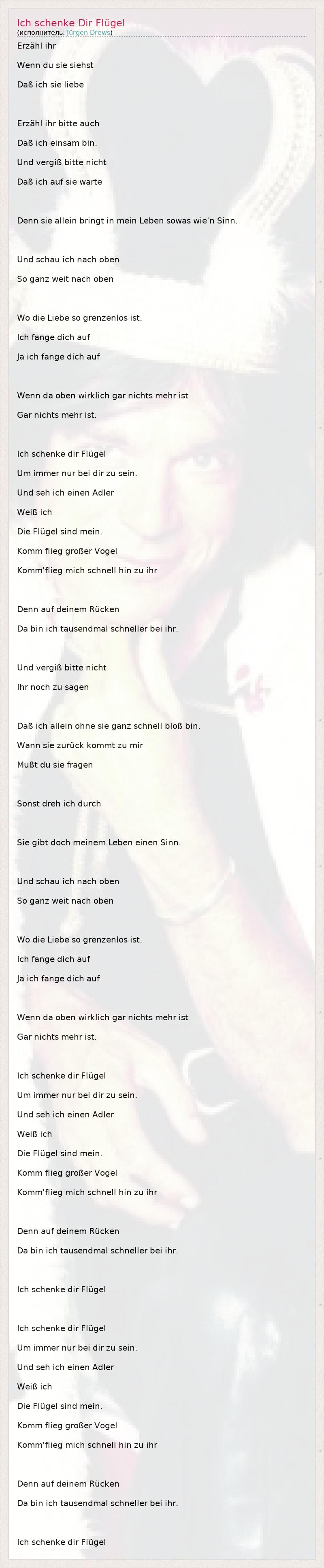 А как ты думаешь, о чем песня "Ich schenke Dir Flügel" ?