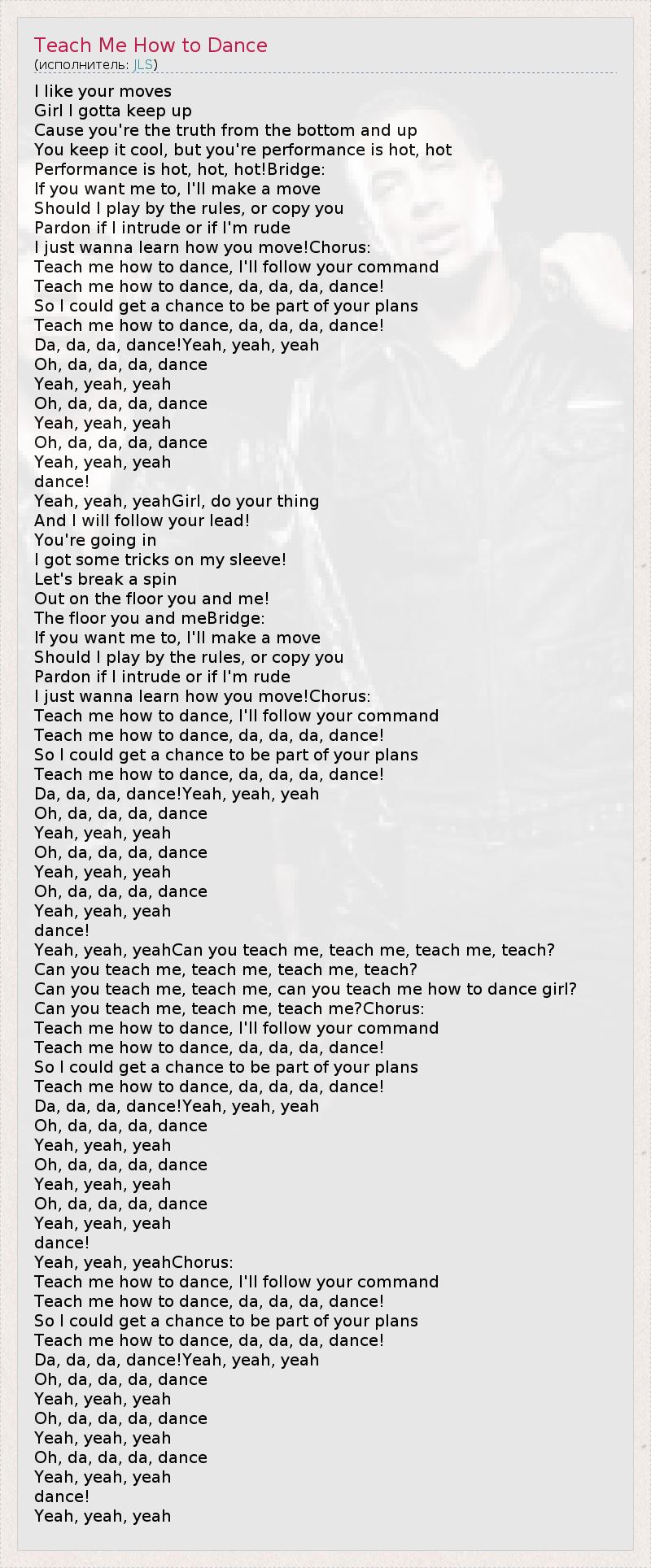 А как ты думаешь, о чем песня "Teach Me How to Dance" ?