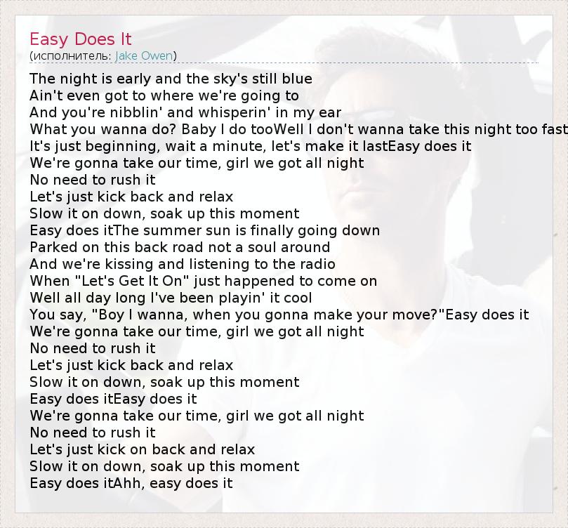 А как ты думаешь, о чем песня "Easy Does It" ?