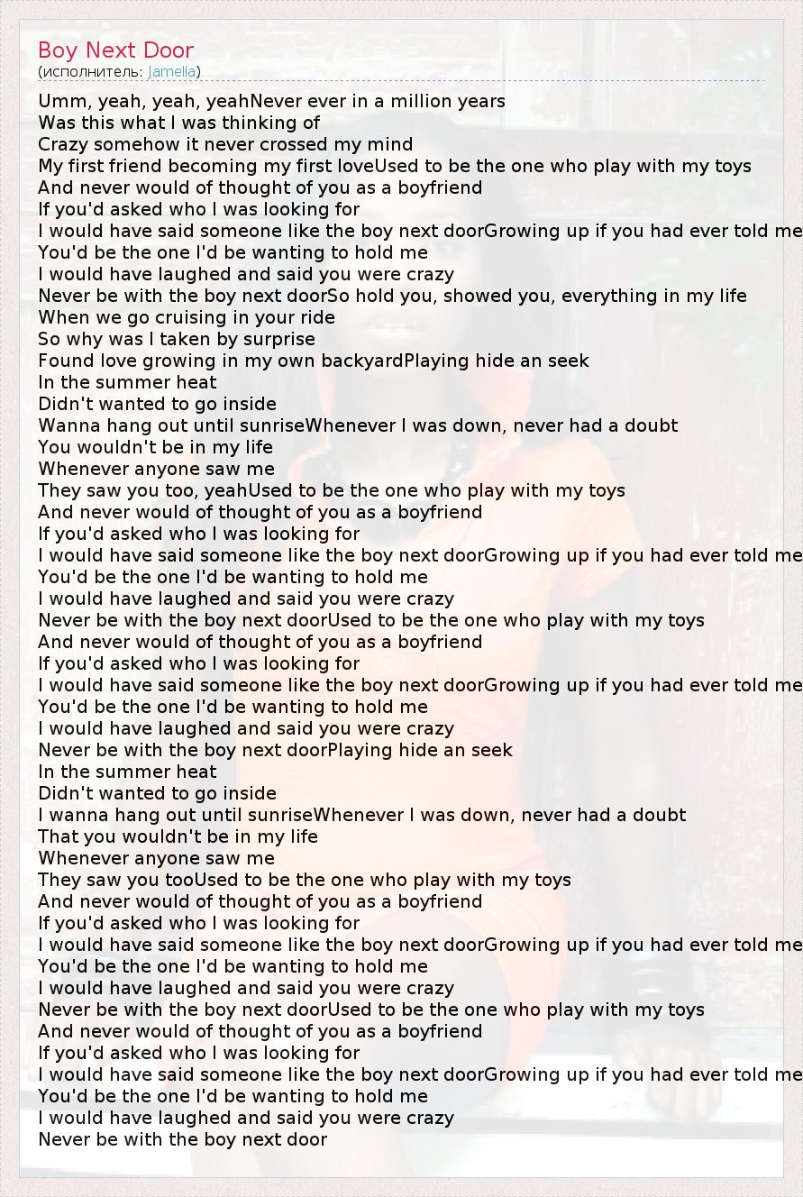 А как ты думаешь, о чем песня "Boy Next Door" ?