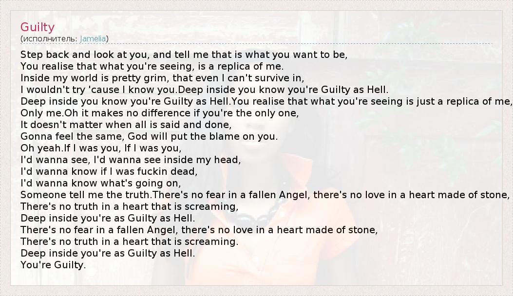 Deep inside you know you're Guilty as Hell.You realise that what you're seeing is just a replica of me,