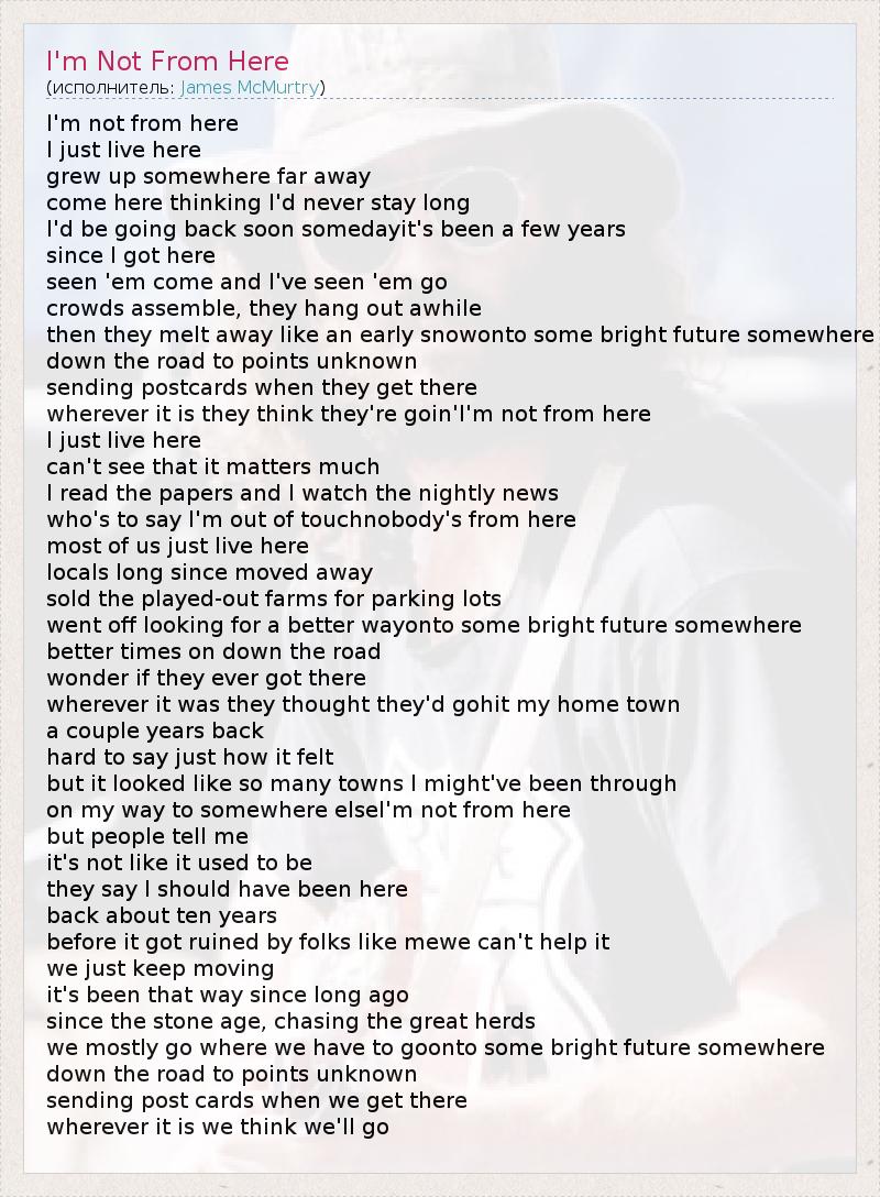 А как ты думаешь, о чем песня "I'm Not From Here" ?