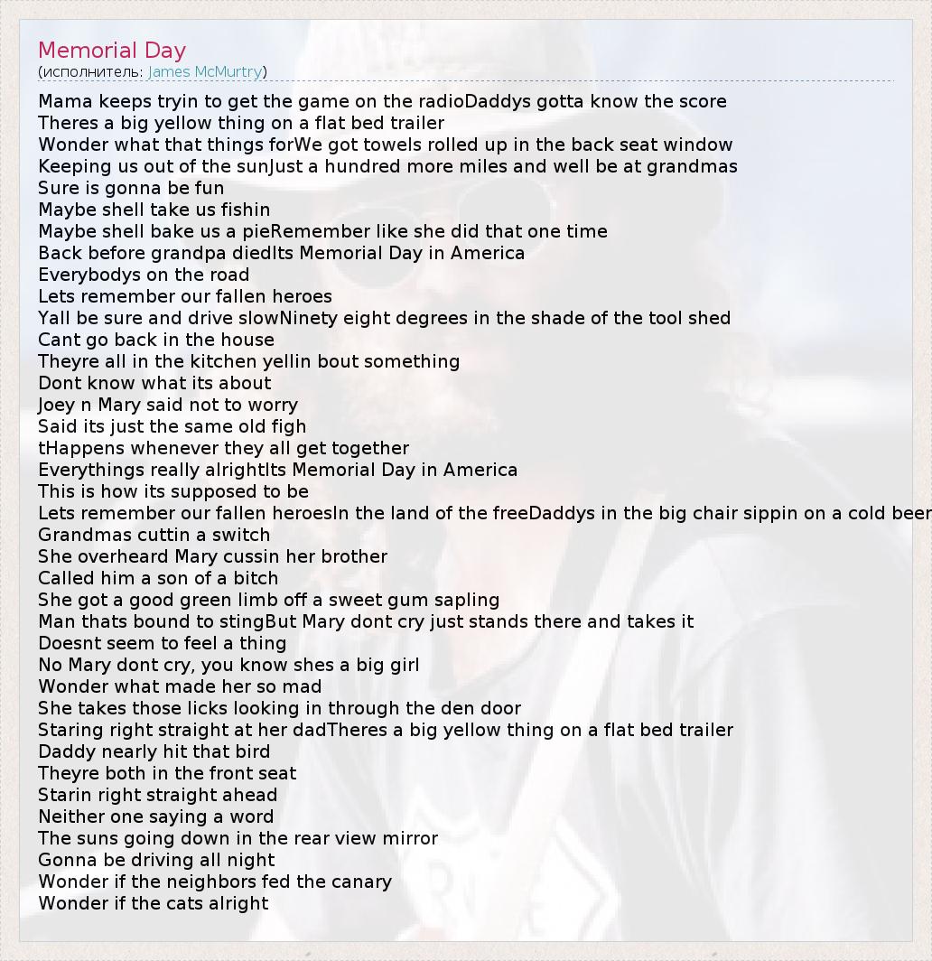 А как ты думаешь, о чем песня "Memorial Day" ?