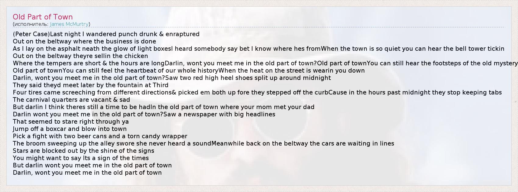 А как ты думаешь, о чем песня "Old Part of Town" ?