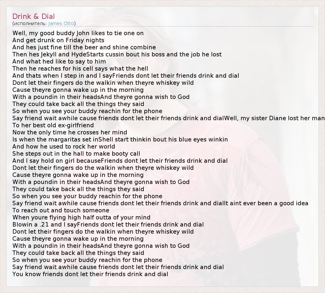 Say friend wait awhile cause friends dont let their friends drink and dialIt aint ever been a good idea