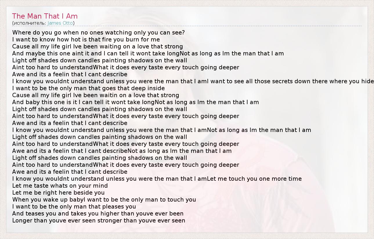 Это интересно:Джеймс Аллен Отто (James Allen Otto) - Американский кантри-певец, также является участником группы MuzikMafia. Родился 29 июля 1973 года в Вашингтоне. Otto занялся своей музыкальной карьерой в 2002 году, подписав контракт с Mercury Nashville Records. В конце 2007 года подписал контракт с Warner Bros. Records. Второй альбом "Sunset Man" должен выйти 8 апреля 2008 года.Впервые запел в возрасте 4 лет, позже учился играть на саксофоне.... продолжение