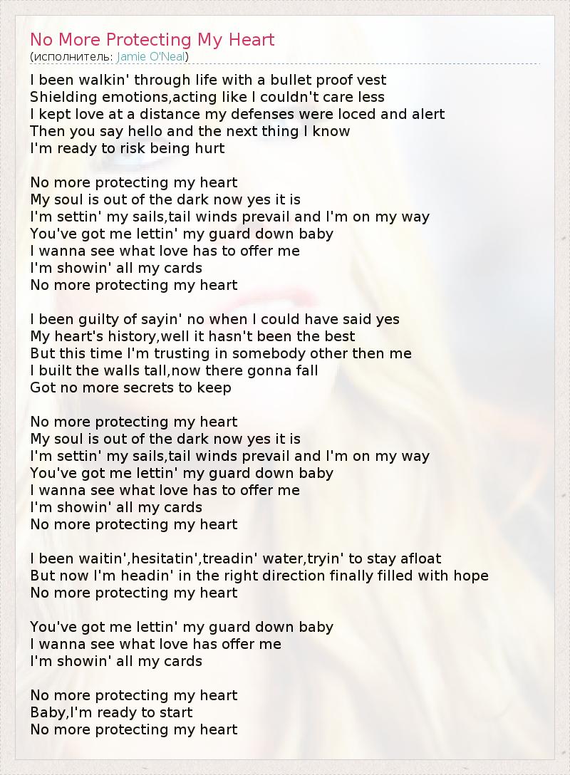 А как ты думаешь, о чем песня "No More Protecting My Heart" ?