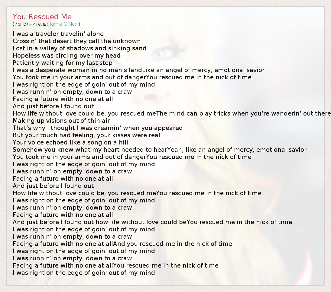 А как ты думаешь, о чем песня "You Rescued Me" ?