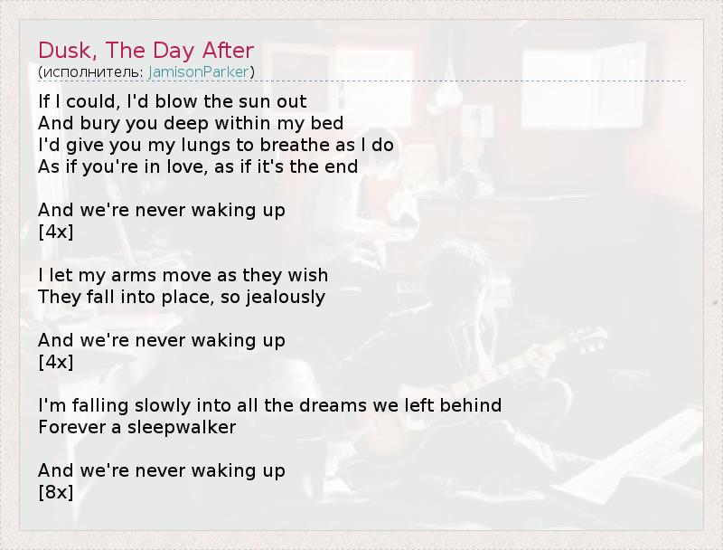 А как ты думаешь, о чем песня "Dusk, The Day After" ?