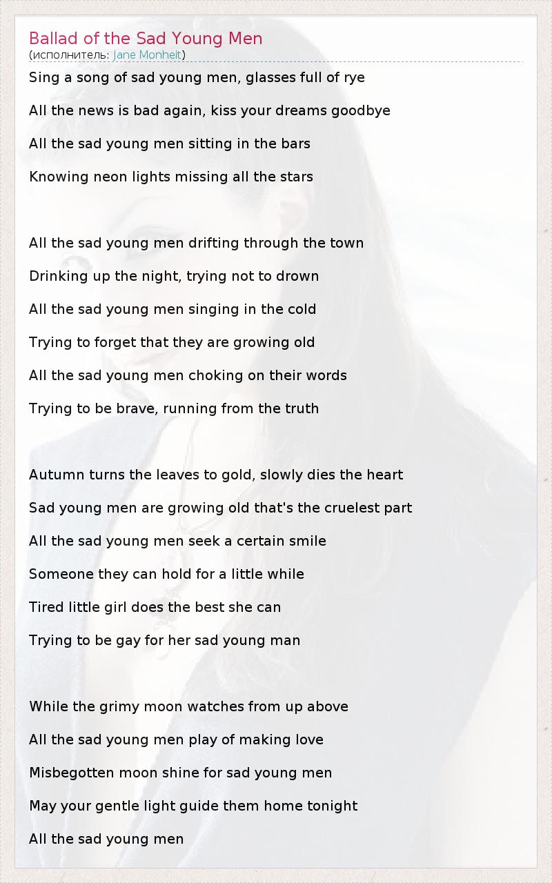А как ты думаешь, о чем песня "Ballad of the Sad Young Men" ?