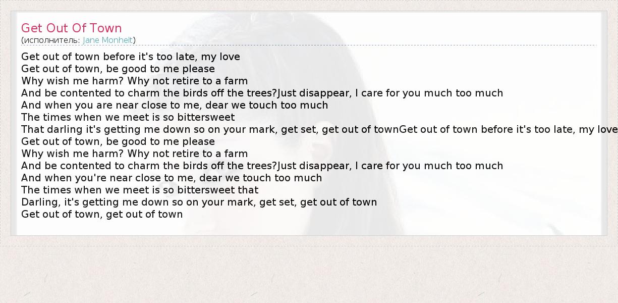 А как ты думаешь, о чем песня "Get Out Of Town" ?