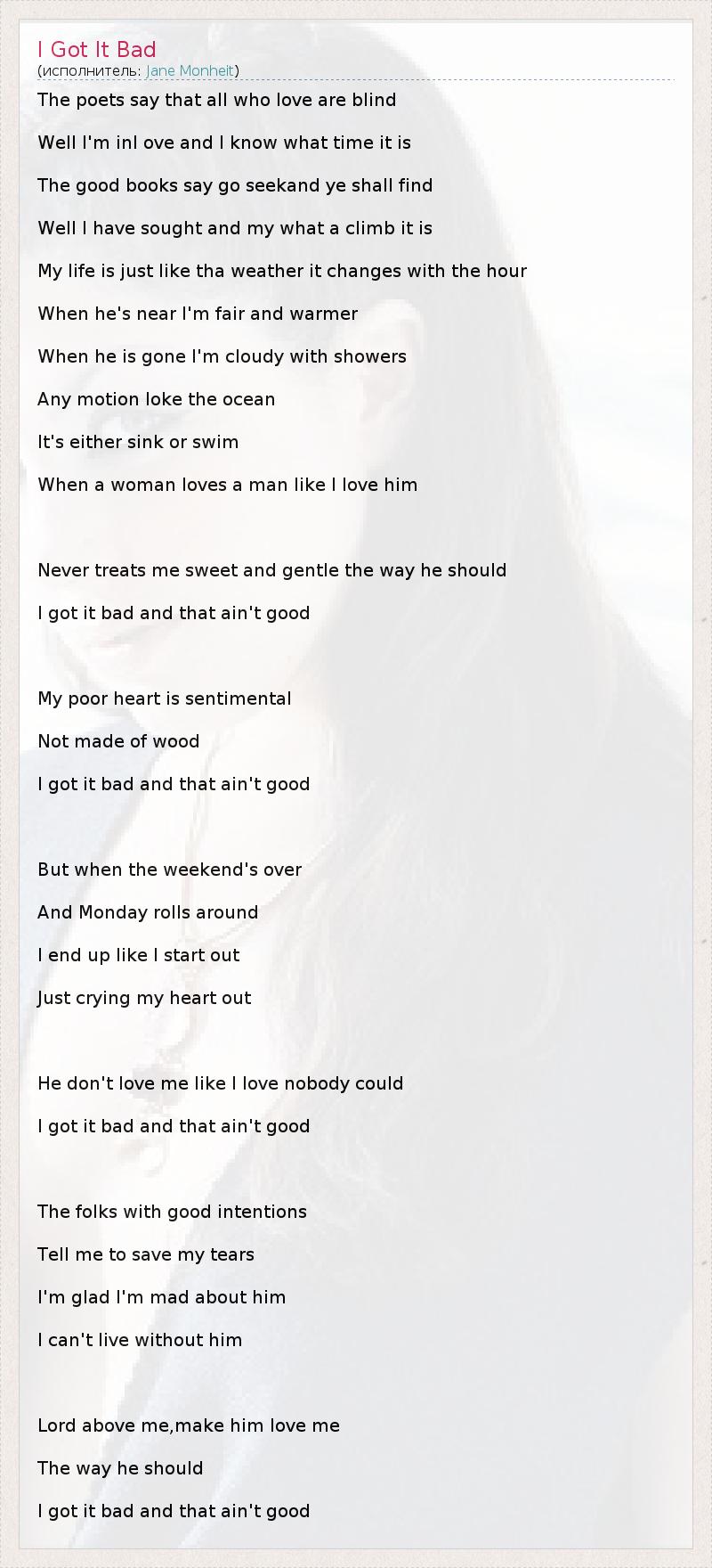 А как ты думаешь, о чем песня "I Got It Bad" ?