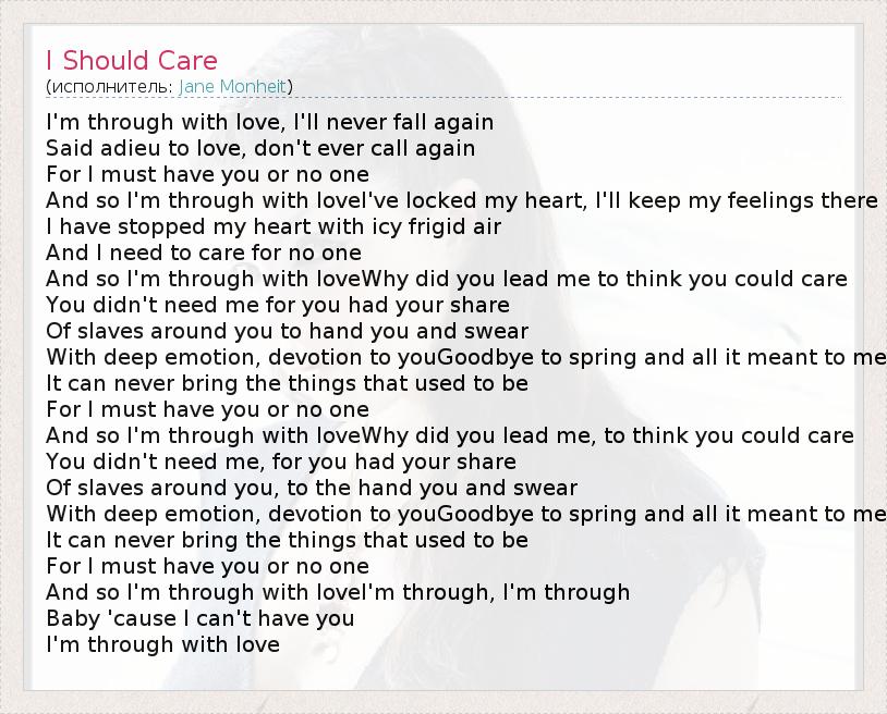 А как ты думаешь, о чем песня "I Should Care" ?