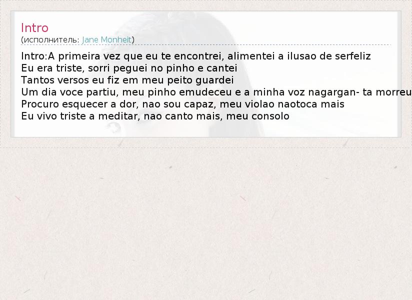 Intro:A primeira vez que eu te encontrei, alimentei a ilusao de serfeliz