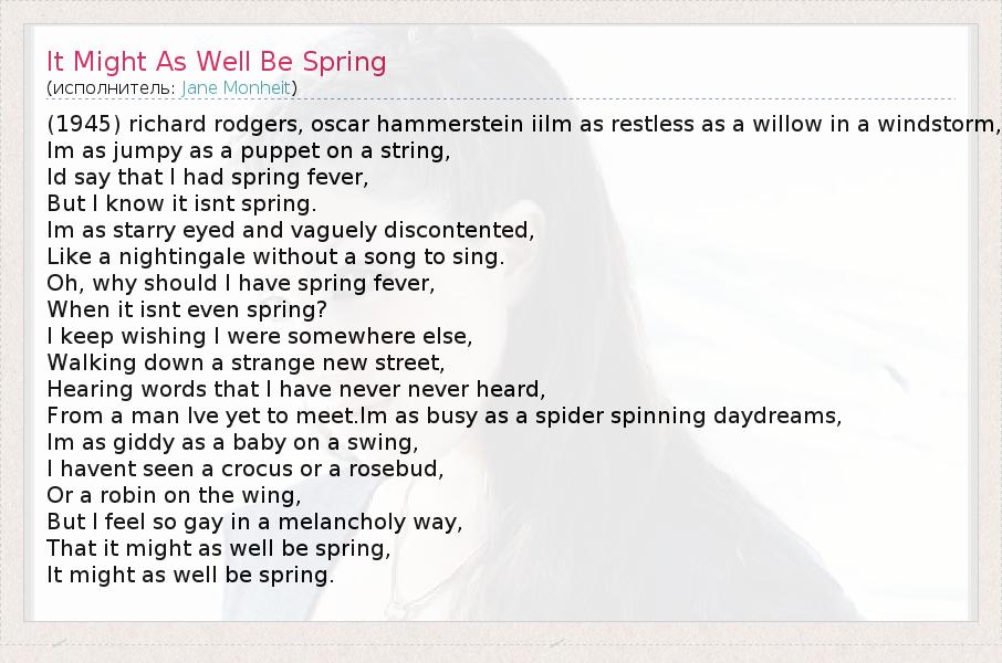 А как ты думаешь, о чем песня "It Might As Well Be Spring" ?
