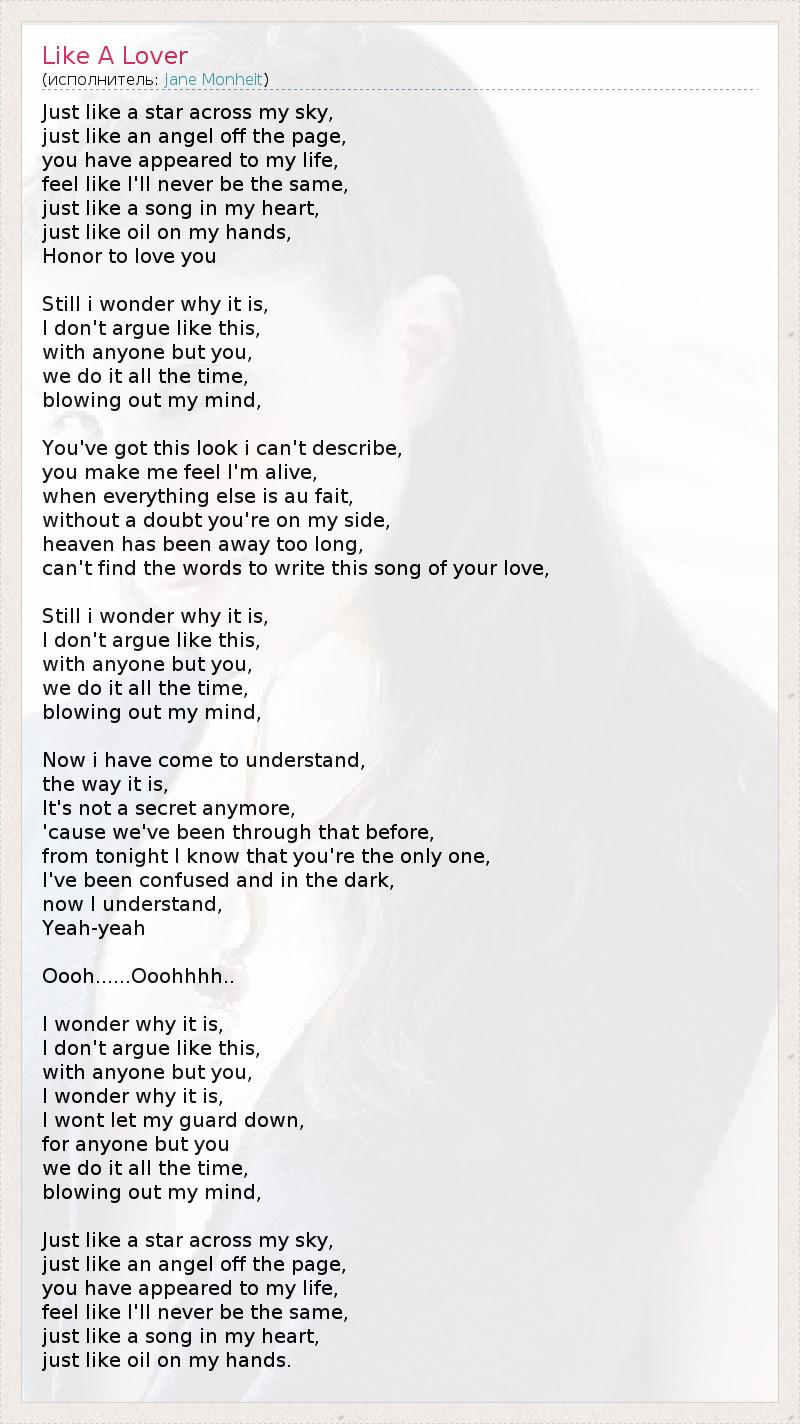 А как ты думаешь, о чем песня "Like A Lover" ?