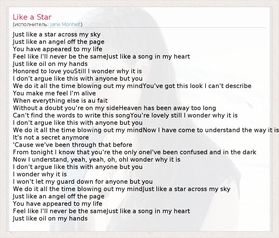 А как ты думаешь, о чем песня "Like a Star" ?