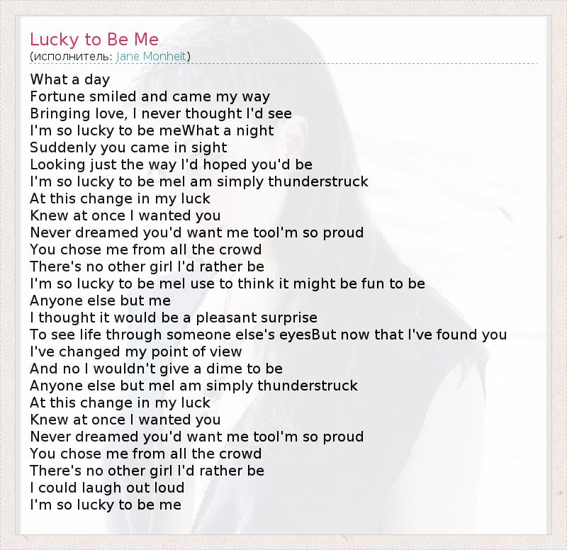 А как ты думаешь, о чем песня "Lucky to Be Me" ?